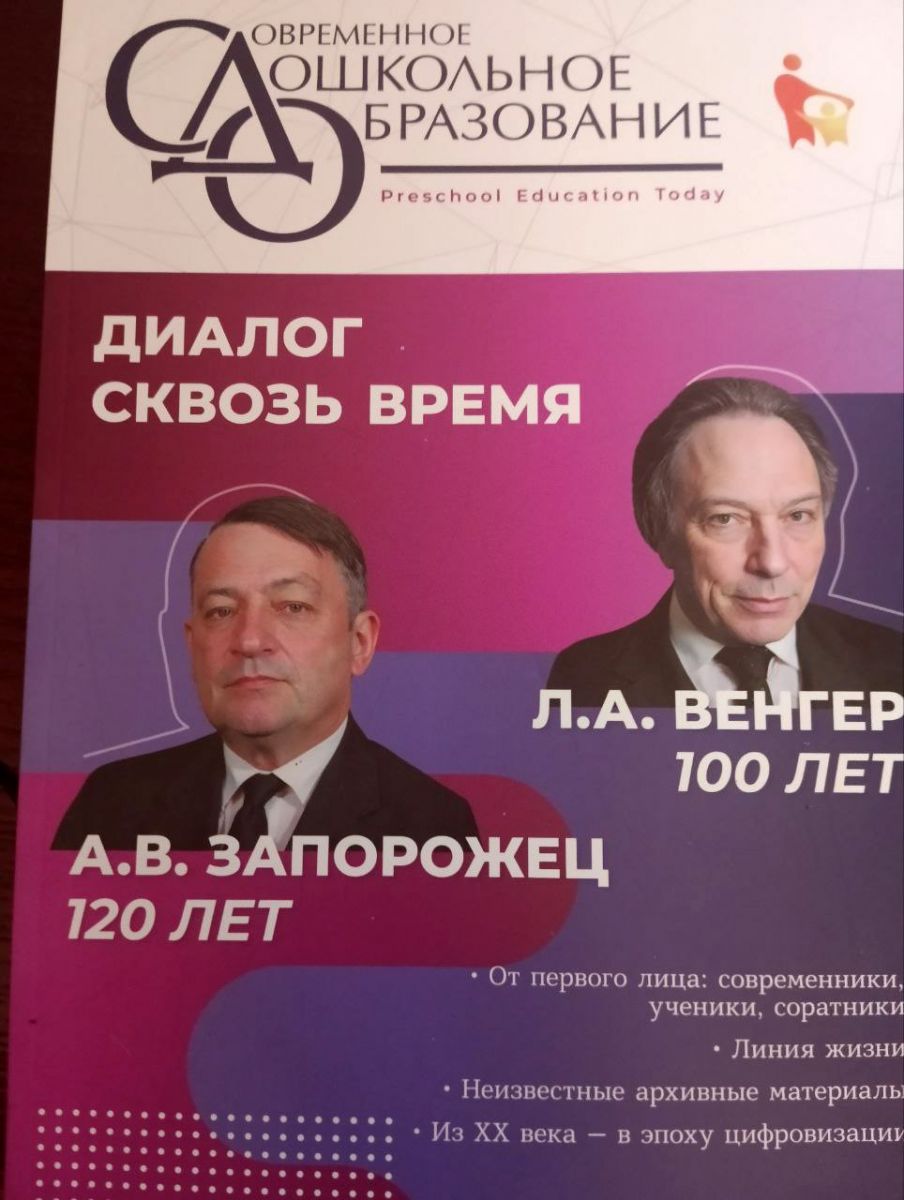 Опубл. в специальном выпуске журнала "Современное дошкольное образование "Диалог сквозь время", посвященном 120-летию А.В.Запорожца и 100-летию Л.А.Венгера. С. 6-11.