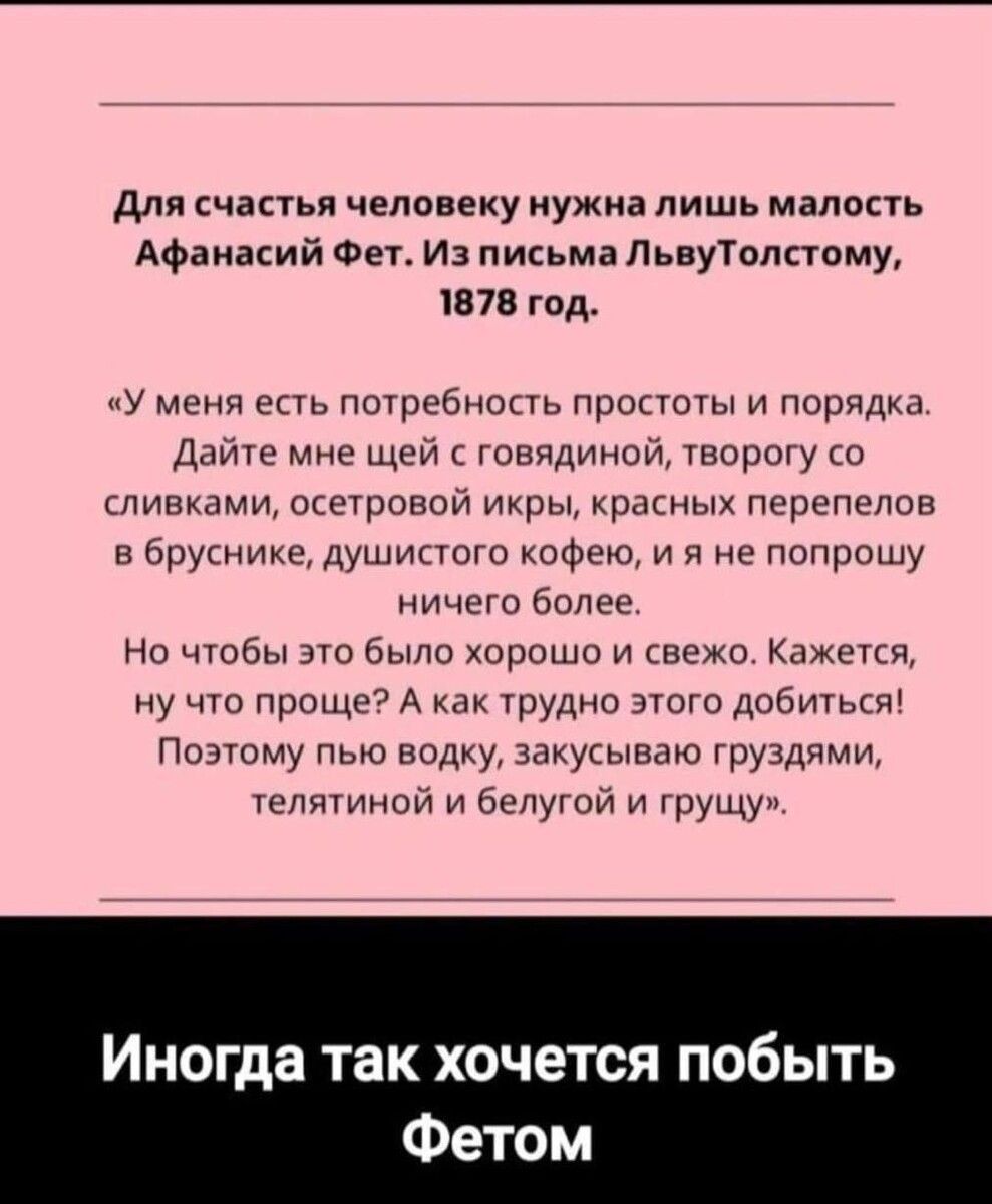 Льву Толстому:Все чинно, даже год написания письма указан. «Редакция» цитаты замечательная: написано и соединено, органично. Но гений русской лирики, соперничество которого Пушкину допускал Некрасов, 16 апреля 1878 года писал Толстому в Ясную Поляну из своей усадьбы в Будановке буквально следующее: