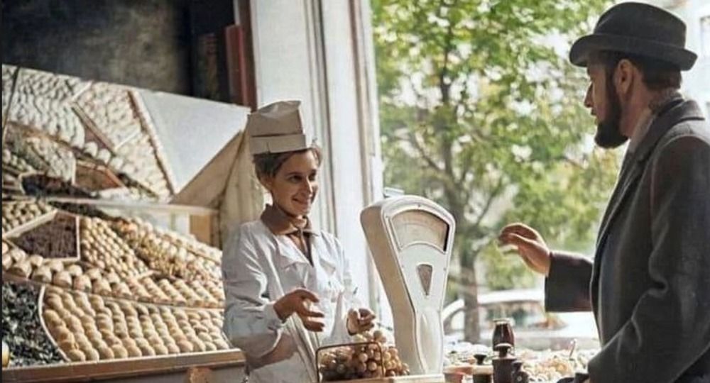 И в самом деле – а вдруг? «Хипстер» 1965 года образца отоваривается в магазине «Овощи-фрукты» на улице Горького (нынешней Тверской). Кто-то скажет: постановочное фото для журнала, пропагандирующего советский образ жизни. Возможно. Уж больно профессиональная съемка и аппаратура. Изобилие и чистота. Даже гири не портят картинки. В общем, «витрина» во всех смыслах. На улице Горького тогда все было витриной, даже если никто не снимал.