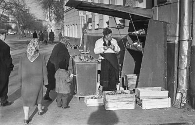 переживание жизни.А это – та же Москва, те же годы, те же «овощи-фрукты». Явно не «постановка», хотя «подсмотрел» это Владимир Матусевич, не только великий фотохудожник, но еще журналист и литератор. Подсмотрел – и увидел. Увидел то, что не успевают заметить другие – жизнь, судьбу, истории, характеры. Время. Не плохое, не хорошее – просто время, где есть разное. Вот сейчас бабушка найдет что-то вкусненькое, хотя по сезону (весна? апрель?) задачка не из простых, и, может, побалует внука. Это сейчас манго и авокадо круглый. А, может, ищет что-то для борща на всю семью? А вдруг внук обожает бабушкин борщ и запомнит его на всю жизнь, но пока отвлечен мороженым? Такая вот, как принято нынче говорить у специалистов, «визуальная социология».