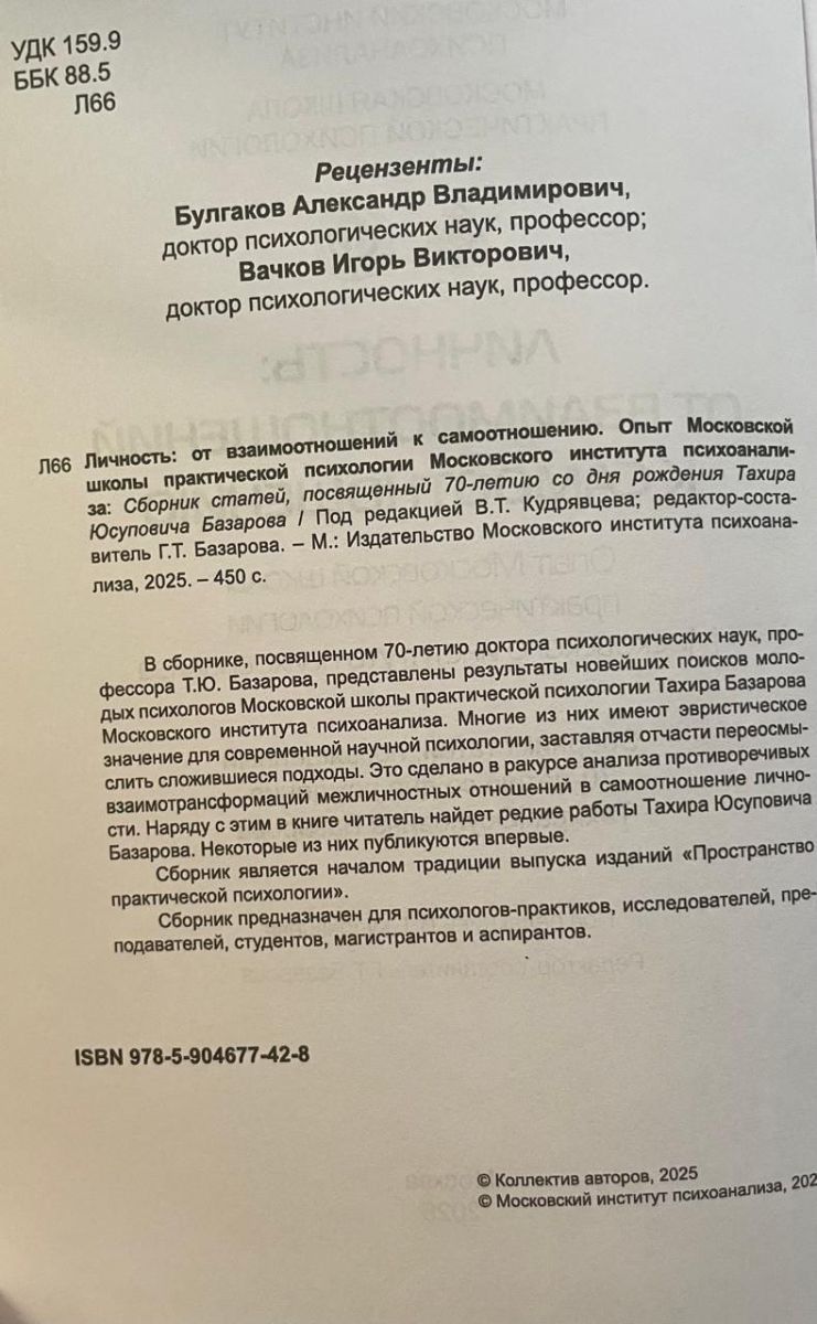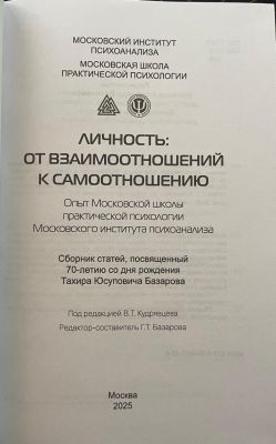 «Личность: от взаимоотношений к самоотношению. Опыт Московской школы практической психологии МИП» под редакцией В.Т.Кудрявцева, редактор-составитель Г.Т.Базарова.