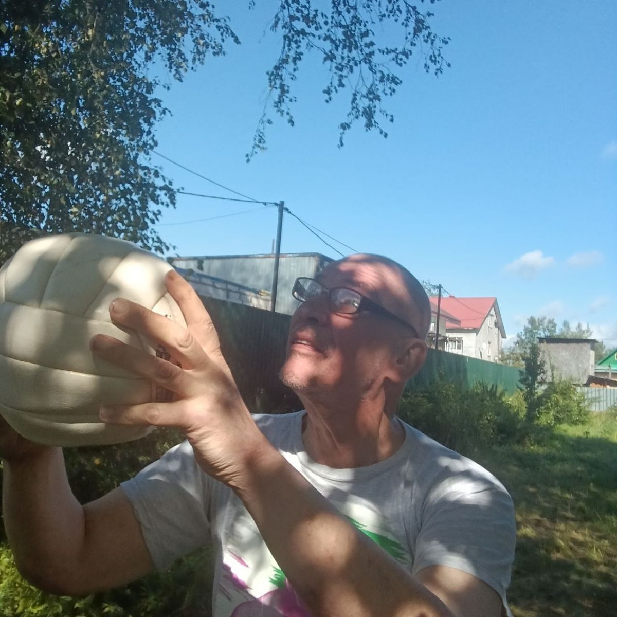К футболу давно равнодушен (мяч в моих руках не футбольный, а волейбольный), хотя тогда меня в него