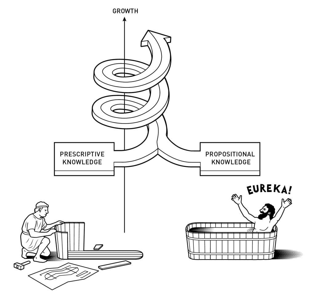 Экономический рост впервые начался, когда появилась связь между предписывающими и пропозициональными знаниями. Однако для устойчивого роста также необходимы практические, технические и коммерческие знания, а также общество, открытое изменениям. ©Йохан Ярнестад/Королевская шведская академия наукXVI и XVII века стали свидетелями научной революции, ставшей частью эпохи Просвещения. Учёные стали настаивать на точных методах измерений, контролируемых экспериментах и воспроизводимости результатов, что привело к улучшению обратной связи между пропозициональным и предписывающим знанием. Это способствовало накоплению полезных знаний, которые можно было использовать в производстве товаров и услуг. Типичными примерами служат усовершенствование паровой машины благодаря современным знаниям об атмосферном давлении и вакууме, а также развитие сталелитейного производства благодаря пониманию того, как кислород снижает содержание углерода в расплавленном чугуне. Приобретение полезных знаний способствовало совершенствованию существующих изобретений и открывало для них новые области применения.