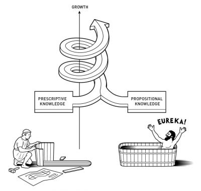 От теории к практикеОднако для реализации новых идей необходимы практические, технические и, не в последнюю очередь, коммерческие знания. Без них даже самые блестящие идеи останутся лишь на чертежной доске, как, например, проекты вертолётов Леонардо да Винчи. Мокир подчеркнул, что устойчивый рост в Великобритании впервые произошел благодаря тому, что страна была домом для множества квалифицированных мастеров и инженеров. Они умели понимать проекты и превращать идеи в коммерческие продукты, и это было критически важно для достижения устойчивого роста.