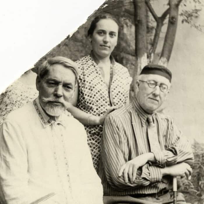 Аза Алибековна с Алексеем Федоровичем Лосевым и родным дядей (по маме) литературоведом, историком и археологом Леонидом Петровичем Семеновым у него дома в Кисловодске.