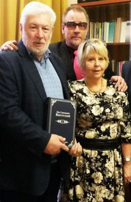 Около 15 лет назад под началом внучки Выготского Елены Кравцовой в РГГУ мы предприняли попытку начать издание академического собрания сочинений Льва Семеновича, которое прервалось по банальной причине отсутствия финансирования, а затем и с уходом Лены (вначале с работы, а вскоре и из жизни). Но Володя Собкин подготовил и издал первый том по психологии искусства, а затем и толстенную книгу комментариев к театральным рецензиям Выготского. С архивными материалами он работал сверхосновательно. Это фото сделано в ноябре 2014 года перед презентацией первого тома в кабинете директора Института психологии им. Л.С. Выготского.
