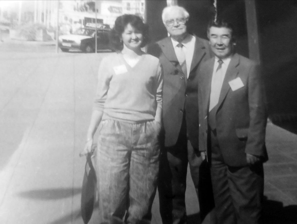 Гульшат Уразалиева с Ж.М.Абдильдиным на Всемирном философском конгрессе в Брайтоне (1988)