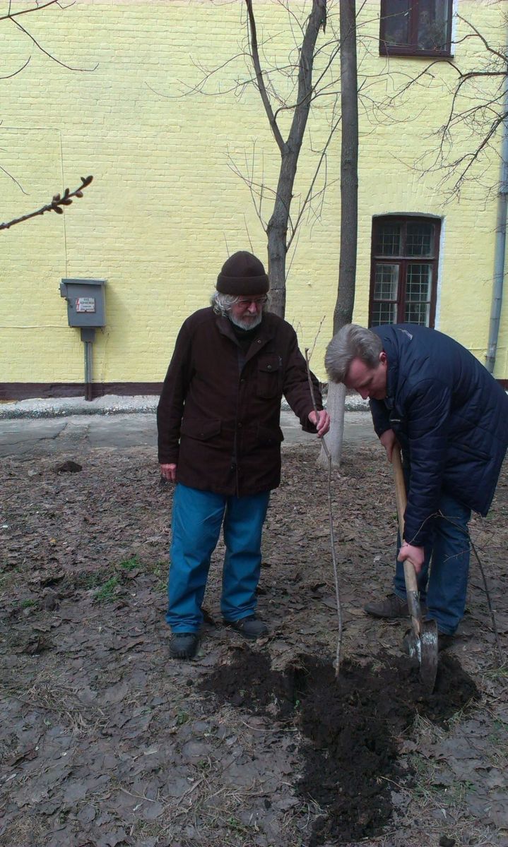 Валентин Алексеевич Моляко сажает сакуру под окнами своей лаборатории психологии творчества в киевском Институте психологии им. Г.С.Костюка. Он обожал Японию и был счастлив, когда в 1972 году побывал на Международном психологическом конгрессе в Токио. И